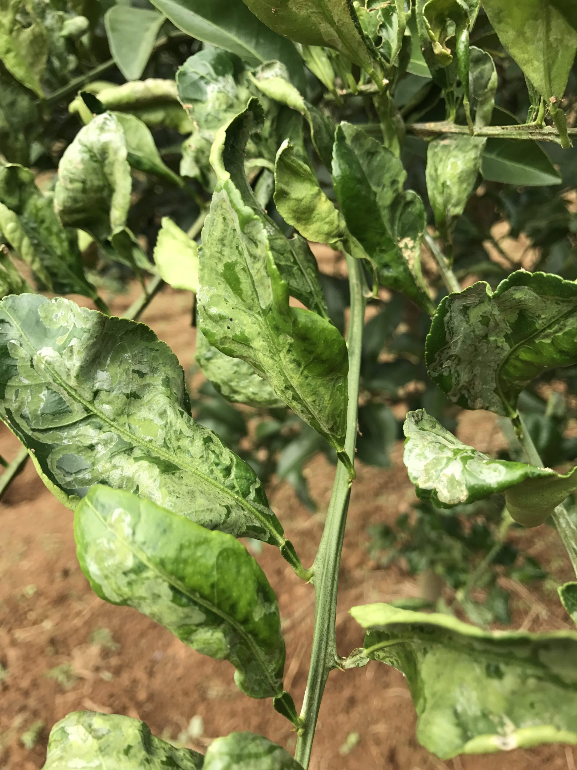 なんだか表面の様子がおかしい葉を発見。しかもあちこちにあります。