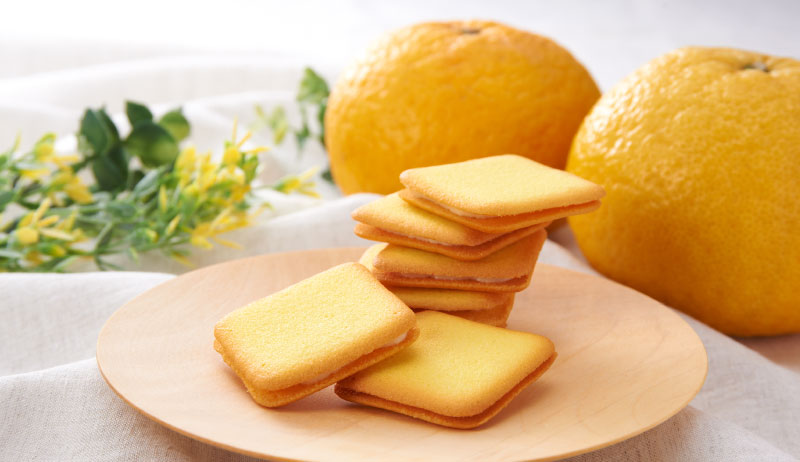 季節限定商品の甘夏みかん明太子、新商品 甘夏みかんラングドシャなどに使用されている甘夏みかんは、大島のものを使用しています。