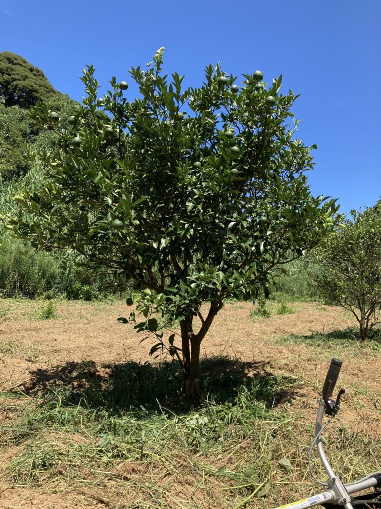 思った以上に雑草が茂っていたから…と、畑をトラクターであらかた耕してくれていたので、水分補給に気を付けながら木の根元に残った雑草をひたすら草刈り機で刈っていきます。